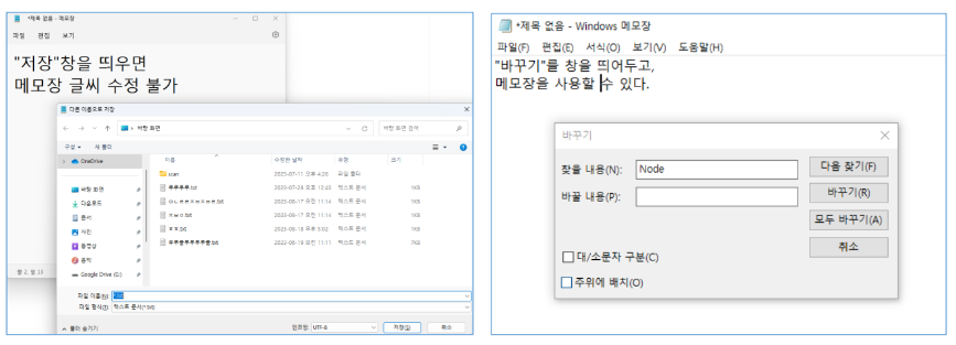 - ex) 메모장의 바꾸기 창은 하위 창 글씨를 수정할 수 있다