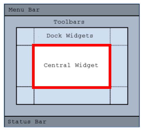 따라서, QMainWindow를 사용할 때는 setCentralWidget() 메서드를 사용하여 각각에 대한 위젯을 설정해주어야 한다.