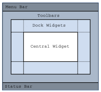 그 이유는 QMainWindow가 다음과 같은 구조로 이루어져 있기 때문이다.