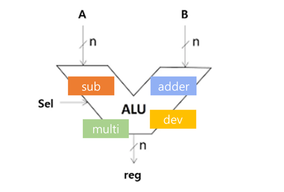 module alu(out, a, b, sel); output reg [7:0] out; input [7:0] a, b; input [2:0] sel; always @(a or b or sel) begin case (sel) 3'b000: out = a + b; 3'b001: out = a - b; 3'b010: out = a & b; 3'b011: out = a | b; default: out = 8'b00000000; endcase end endmodule
