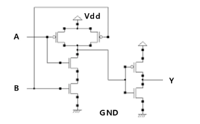 module and_gate ( input a, // 입력 A input b, // 입력 B output y // 출력 Y ); supply1 vdd; // VDD 전원 공급 supply0 gnd; // GND 접지 wire nand_out; // NAND 출력 // NAND 게이트 구현 (CMOS 방식) // Pull-Up Network (PMOS) pmos (nand_out, vdd, a); pmos (nand_out, vdd, b); // Pull-Down Network (NMOS) wire nmos_out; nmos (nmos_out, gnd, a); nmos (nand_out, nmos_out, b); // 인버터 구현 (NOT 게이트) // Pull-Up Network (PMOS) pmos (y, vdd, nand_out); // Pull-Down Network (NMOS) nmos (y, gnd, nand_out); endmodule'개인 공부 > 회로' 카테고리의 다른 글