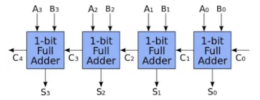 module ripple_carry_adder ( input [3:0] a, // 입력 A (4비트) input [3:0] b, // 입력 B (4비트) input cin, // 입력 캐리 output [3:0] sum, // 출력 합계 (4비트) output cout // 출력 캐리 ); wire c1, c2, c3; // 내부 캐리 신호 // **Full Adder를 인스턴스화하여 연결** full_adder fa0 (.a(a[0]), .b(b[0]), .cin(cin), .sum(sum[0]), .cout(c1)); full_adder fa1 (.a(a[1]), .b(b[1]), .cin(c1), .sum(sum[1]), .cout(c2)); full_adder fa2 (.a(a[2]), .b(b[2]), .cin(c2), .sum(sum[2]), .cout(c3)); full_adder fa3 (.a(a[3]), .b(b[3]), .cin(c3), .sum(sum[3]), .cout(cout)); endmodule