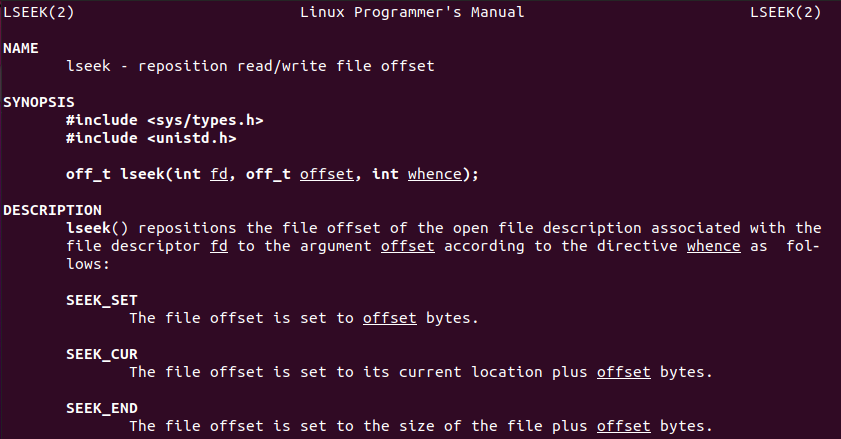 - SEEK_SET(=0): 파일의 맨 처음 시작 위치부터 offset 바이트를 이동