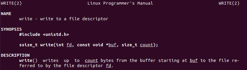 ssize_t write(int fd, const void buf[.count], size_t count )